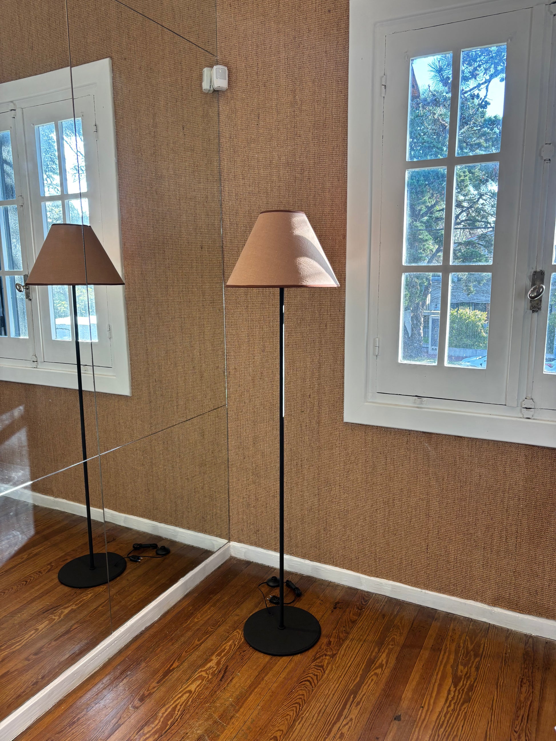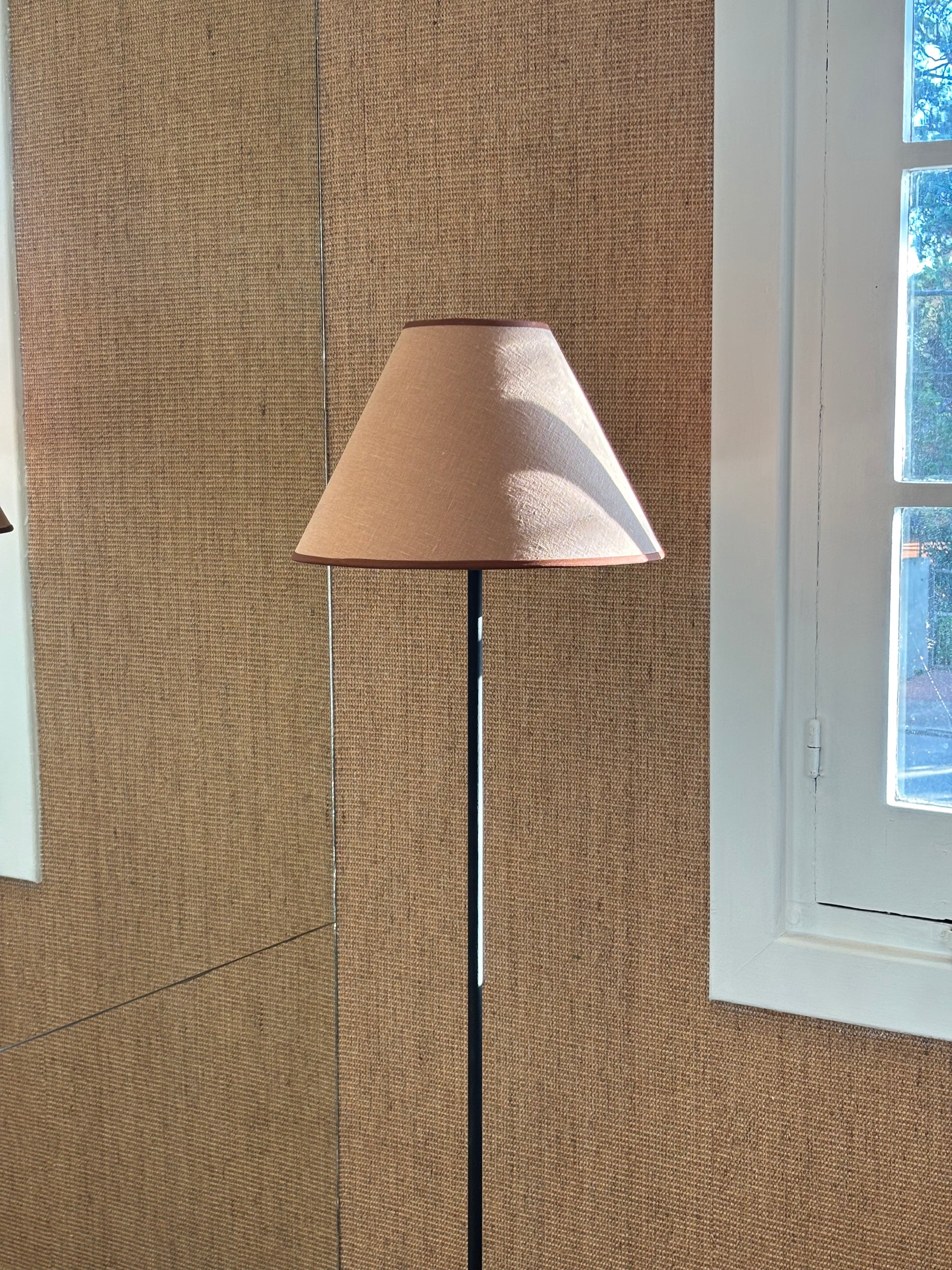 Luminaria de pie de hierro pintado negro + pantalla en lino Rosa